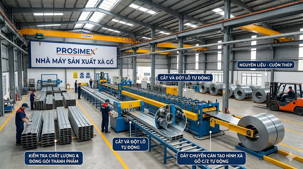 Xà gồ thép là giải pháp tối ưu cho các công trình xây dựng hiện đại nhờ độ bền cao, chi phí hợp lý và thi công nhanh. Việc lựa chọn đơn vị gia công uy tín như Cơ Khí Prosimex sẽ giúp bạn đảm bảo chất lượng công trình và tối ưu hiệu quả đầu tư.
