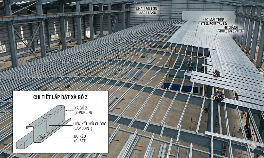 Hình 1: Xà gồ Z thép mạ kẽm trong công trình thực tế