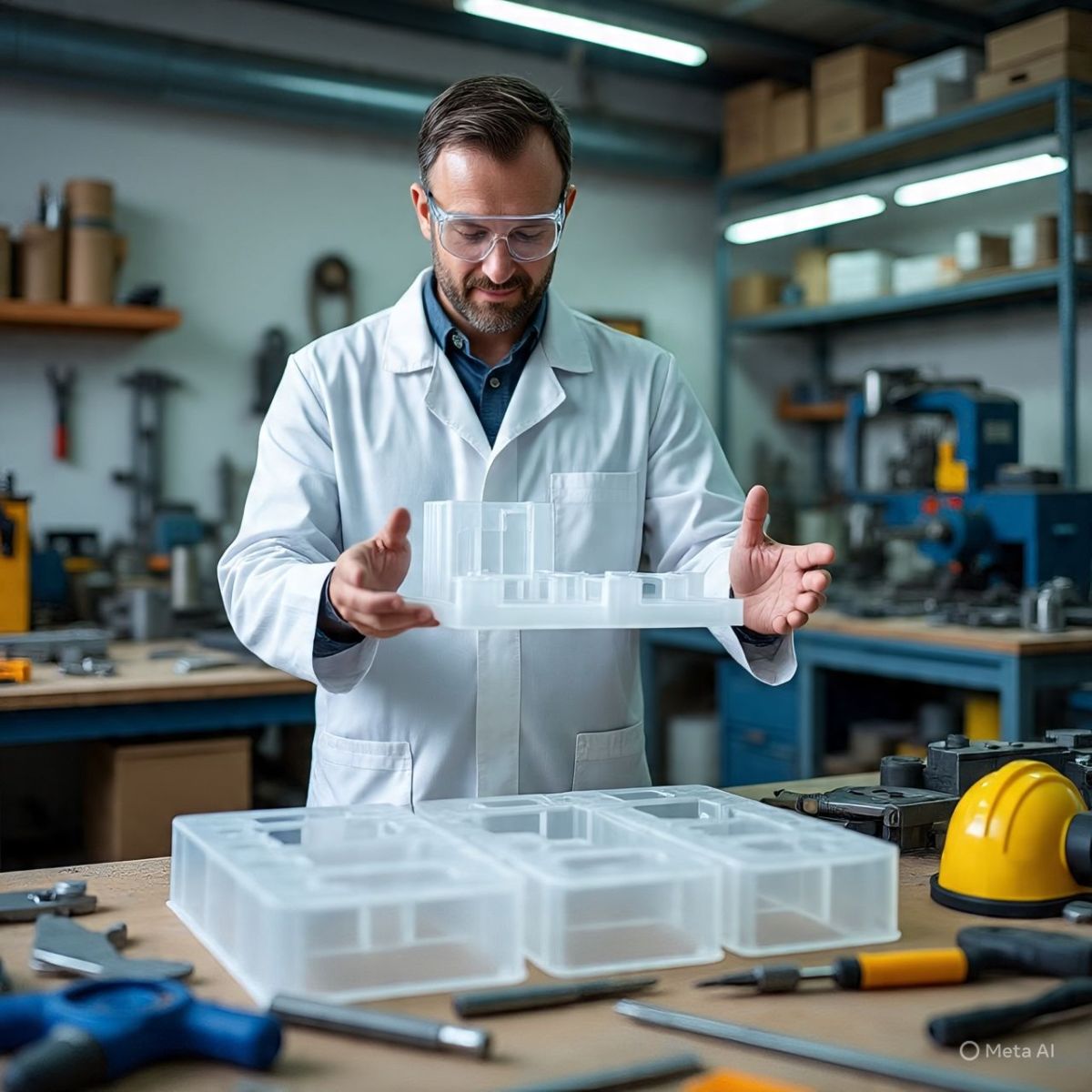 (Hình 5: Kỹ sư Prosimex kiểm tra bộ khuôn nhựa vừa hoàn thiện tại xưởng)